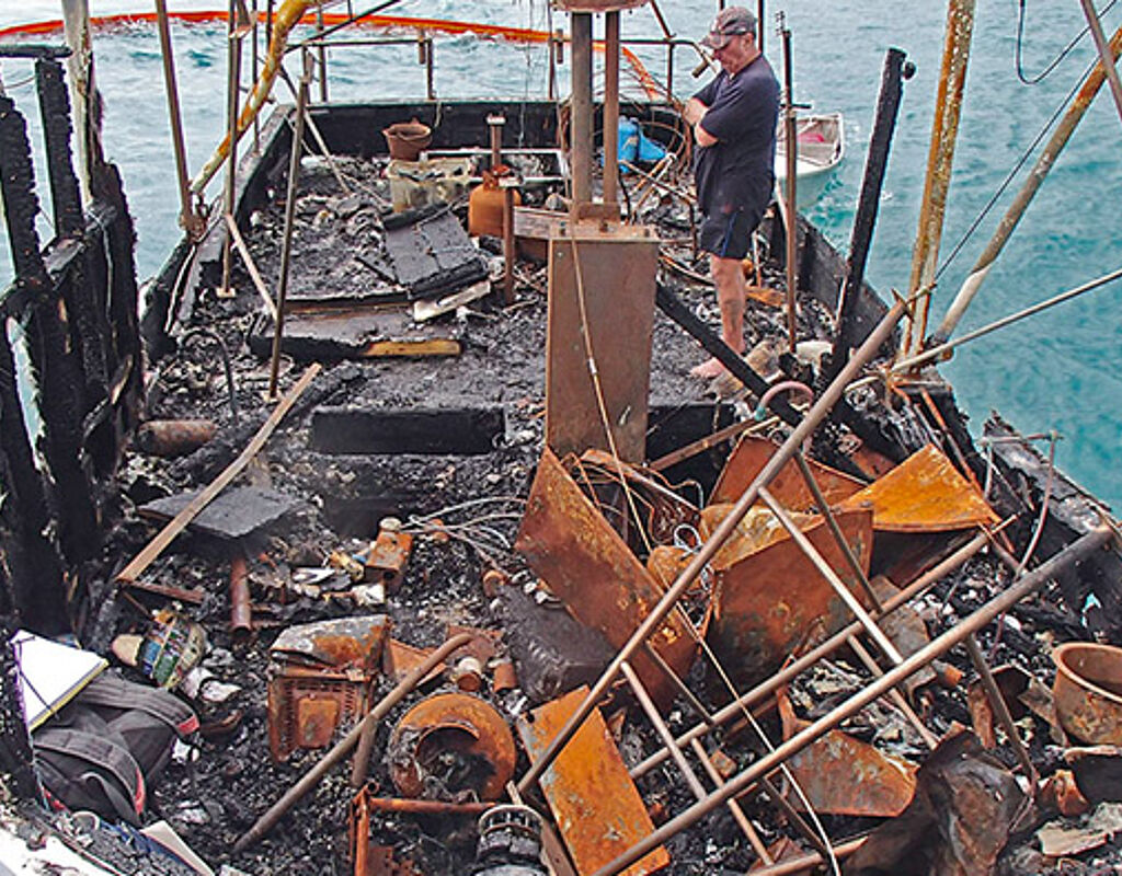 “It was all ablaze and we were off in just on three minutes”, was how Noel Elliott described the scene you see here. “The most horrendous thing is how quickly all the wiring burns. Remember, on a boat you’re encased in the stuff. It’s a bit like being in a single garage with wires in all the roof and wall cavities, as well as the floor.”
