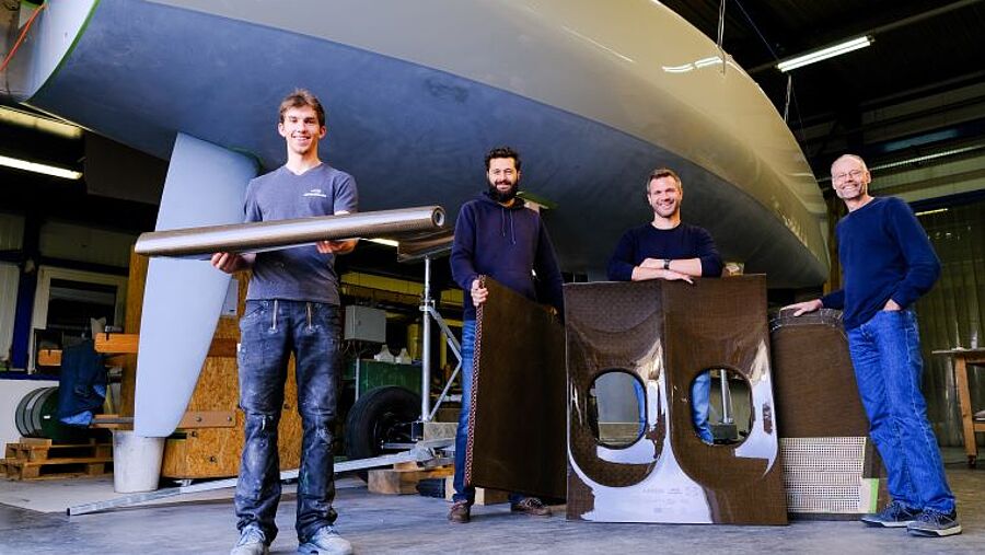 Für naturfaserverstärkte Kunststoffe (NFK) stehen beispielsweise die Einzelbauten der Bremer Werft Greenboats. Dort lässt Matthias Bröker, Yachtdesigner beim Konstruktionsbüro Judel/Vrolijk in Bremerhaven, derzeit eine selbst entworfene 9-Meter-Segelyacht bauen.