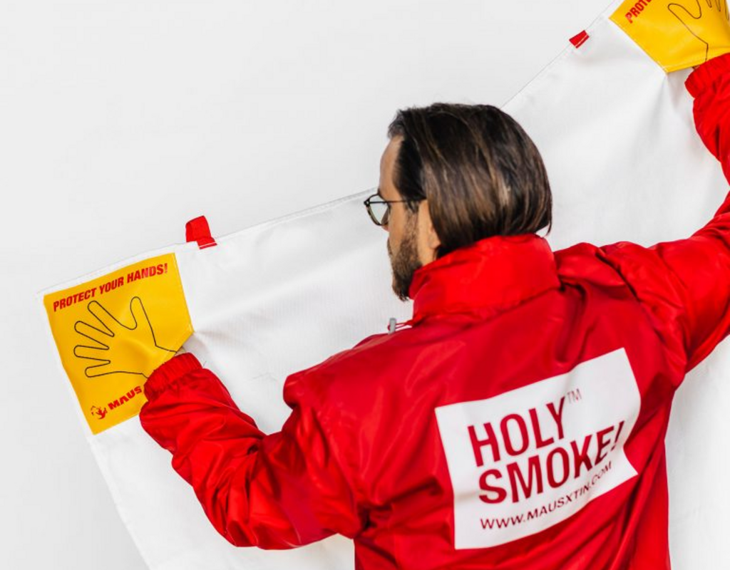 att kväva lågor genom att täcka dem. Om till exempel fett i en stekpanna tar eld är vatten helt fel släckmedel. Helst bör en brandfilt förvaras i närheten av spisen. Brandfilten vi har testat från MAUS, har dessutom inbyggda fickor för händerna som skyddar händerna från lågorna när filten läggs på.